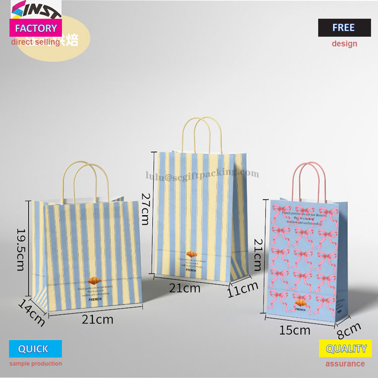 Spoločnosť Sinst Tlač a obaly spoločnosť používa materiál na papierový vreckový materiál, pričom hlavné telo je vybrané v béžovej/svetlo žltej farbe a ústa vrecka zdobené svetlo modrou vlnou. Je spárovaný s výraznou žltou rukoväťou v tvare lana, ktorá vyvažuje praktickosť a pochúťku od dotyku po videnie a detaily ukazujú starostlivosť. Nechajte zákazníka, aby sa cítil šťastný, keď uvidí túto obalovú tašku.