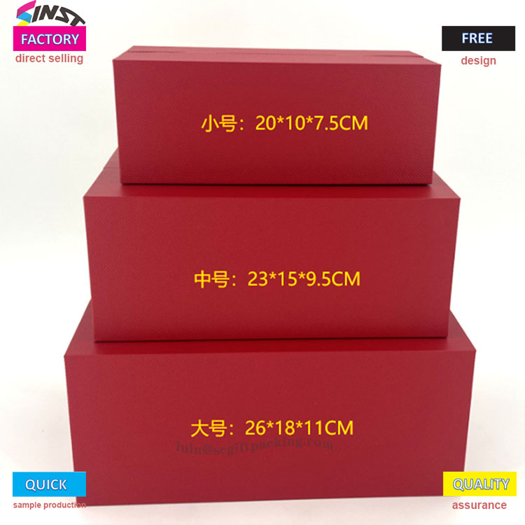 Okrem držania červeného vína sa dajú tri veľkosti tohto darčekového boxu flexibilne kombinovať: malú veľkosť sa dá použiť ako čajová darčeková krabica, stredná veľkosť sa môže použiť ako darčekový box sušienky a veľká veľkosť sa môže použiť ako darčeková krabica na zdravie produktu. Ak je naskladaný stupňovitým spôsobom, tvorí „rodinnú úložnú vežu“; Červená škrupina je odolná voči nečistotám a papierový materiál je ľahký. Môže byť uložený v skrinke bez toho, aby sa zaberal priestor, keď sa nepoužíva. Pre bežných ľudí to nie je len škatuľka na držanie červeného vína, ale aj praktický skladovací nástroj, ktorý je možné použiť na viacero účelov.