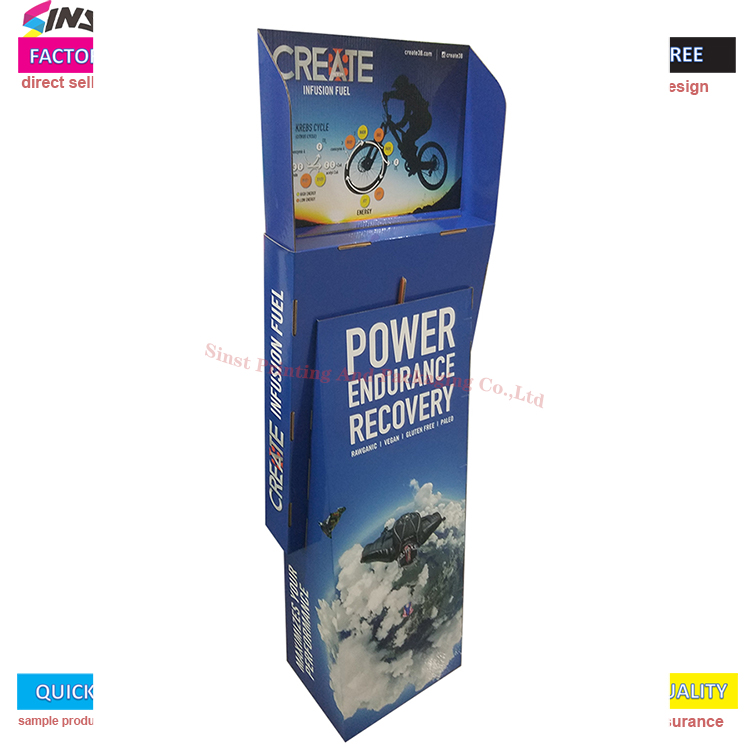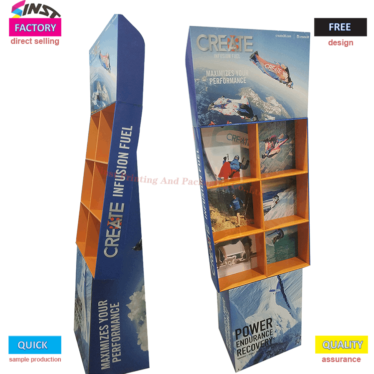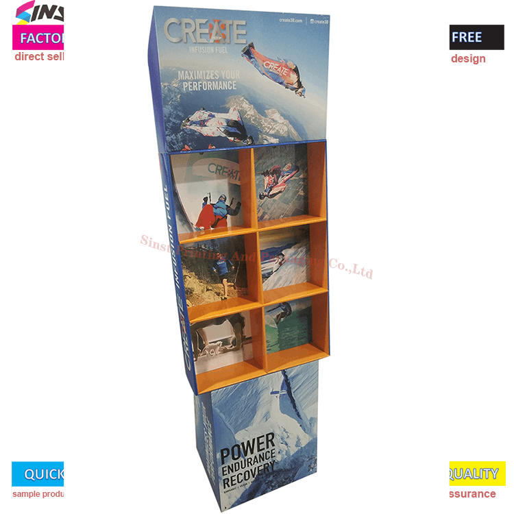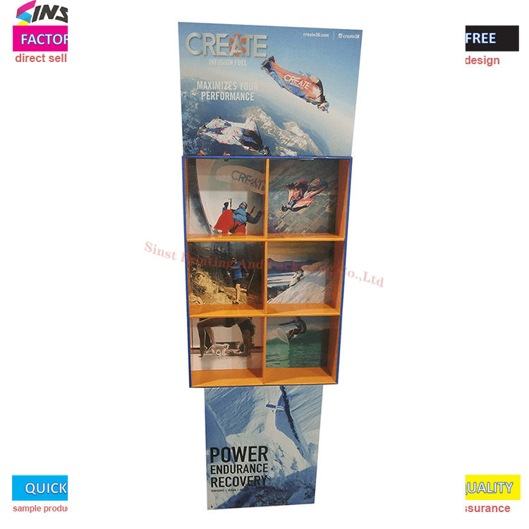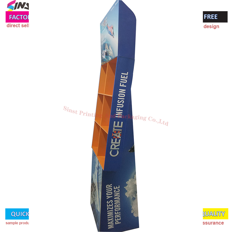 Podlahový stojan z energetickej práškovej lepenky využíva dizajnový koncept mriežky, tlače s vysokým rozlíšením a krásnych farieb na upútanie pozornosti; Sinst používa vysokopevnostnú vlnitú lepenku, ktorá je plne šetrná k životnému prostrediu a je možné ju recyklovať; Pokiaľ prídete na výkres, môžeme prispôsobiť vzorku a všetky druhy materiálov a procesov v priemysle je možné prispôsobiť a vyrobiť;