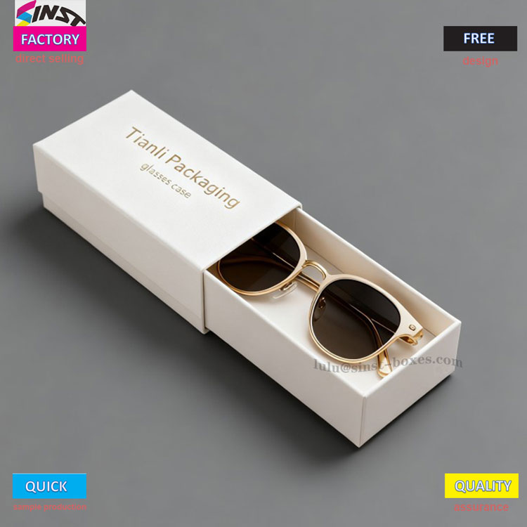 V prípade značkového puzdra na okuliare je text vyrazený za horúca na veku a tele puzdra na dotyk textúrovaný, čo ho na prvý pohľad odlišuje od iných bežných puzdier na okuliare. Univerzálnosť darčekovej krabičky Glasses je výraznejšia: ide o bežnú škatuľu na uloženie okuliarov na každodenné použitie s prehľadne usporiadanými zásuvkami; Pri obdarovávaní zákazníkov alebo priateľov sa zlato-biele balenie v obchodnom štýle okamžite premení na štýlové darčekové puzdro na okuliare; Ak chcete byť exkluzívnejší, môžete tiež nájsť továreň na prispôsobenie a pridať logo značky alebo správu o požehnaní na telo škatuľky, čím ju vylepšíte na jedinečné prispôsobené puzdro na okuliare - obsahuje nielen okuliare, ale venuje pozornosť aj príjemcovi.