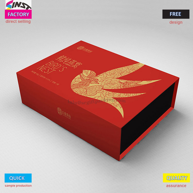 Tento špičkový zdravotnícky produkt Bird Nest Flip Cover Cover Gift Box je založený na luxusnom zhode s červenou a čiernou farbou. Vonkajšia škatuľka je vyrobená z tuhej lepenky s magnetickým otvorom a uzatváracím konštrukciou. Po otvorení škatule je prítomná vnútorná vnútorná presná penová podšívka. Šesť nezávislých oddielov sa presne stará o každú fľašu pripraveného na jesť vtáčie hniezdo, ktoré má vizuálnu krásu aj praktickú ochranu. Či už sa predáva v obchodaku alebo dáva darčeky rodine a priateľom na vyjadrenie svojich pocitov, všetci ukazujú štýl.