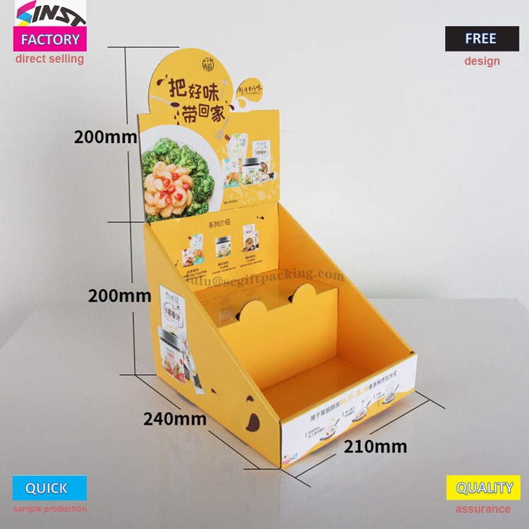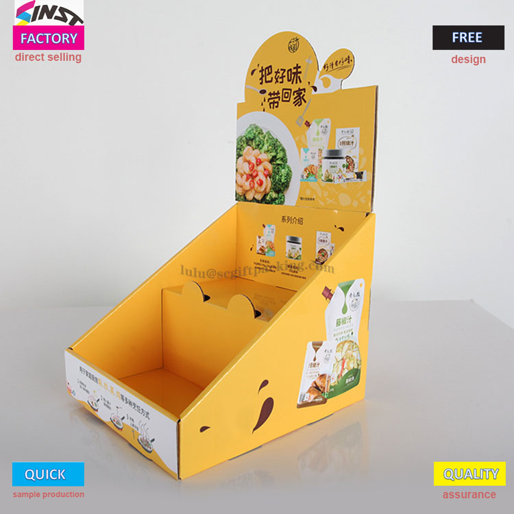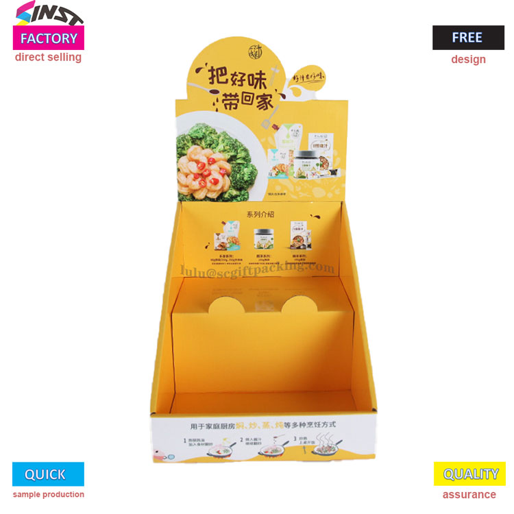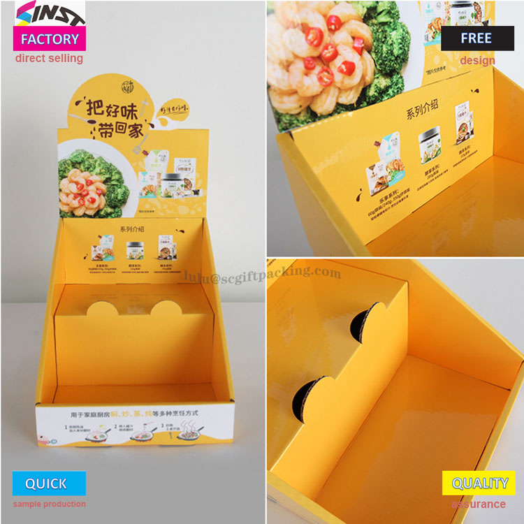 Jedná sa o supermarketové zariadenie na kartónové skrinky na korenie na korenín, ktoré môže byť zobrazovací box korenia, skrinka na zobrazenie soli, zobrazenie kuracieho esencie atď. Je hlavne v jasne žltej farbe a stala sa pútavým nástrojom na zobrazenie dosky na dosku!
