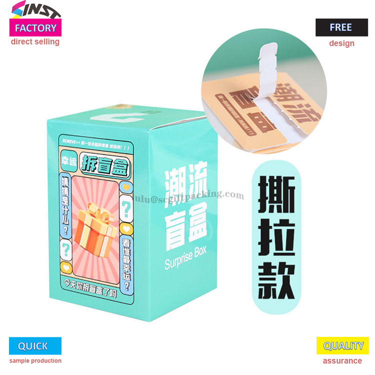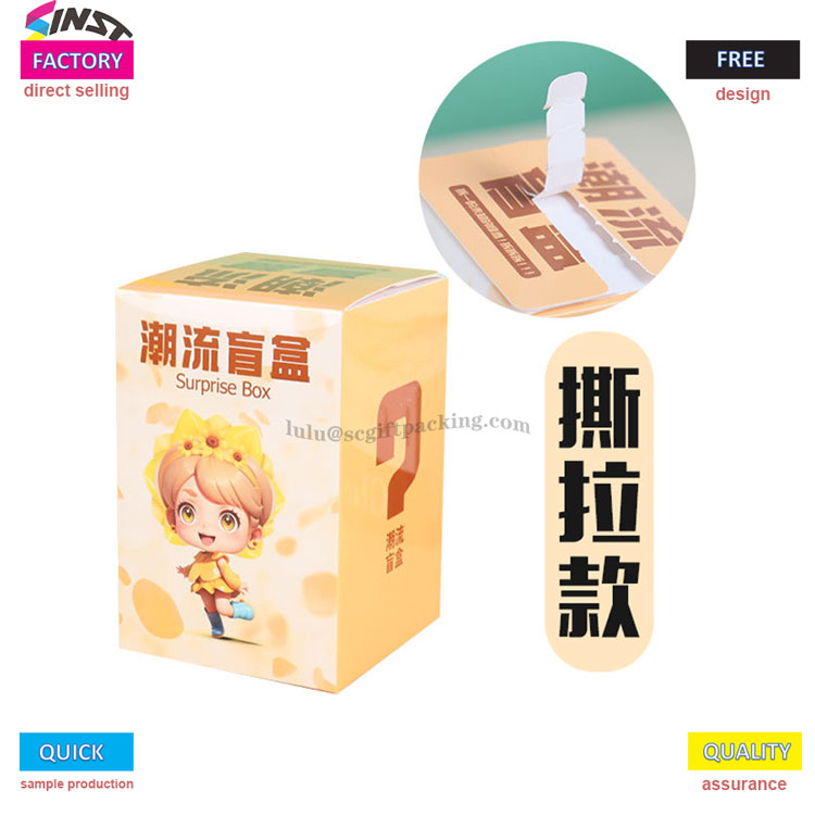 Roztrhnite škatuľu slepého boxu na slepú krabicu Dolldy Doll Doll Doll Box, ktorá sa dá prispôsobiť podľa potrieb zákazníkov. V súčasnosti sú veľkosti krabíc: 6 * 6 * 10 cm; 10 * 10 * 15 cm; Toto políčko môže použiť tlač s vysokým rozlíšením a importovaný atrament,